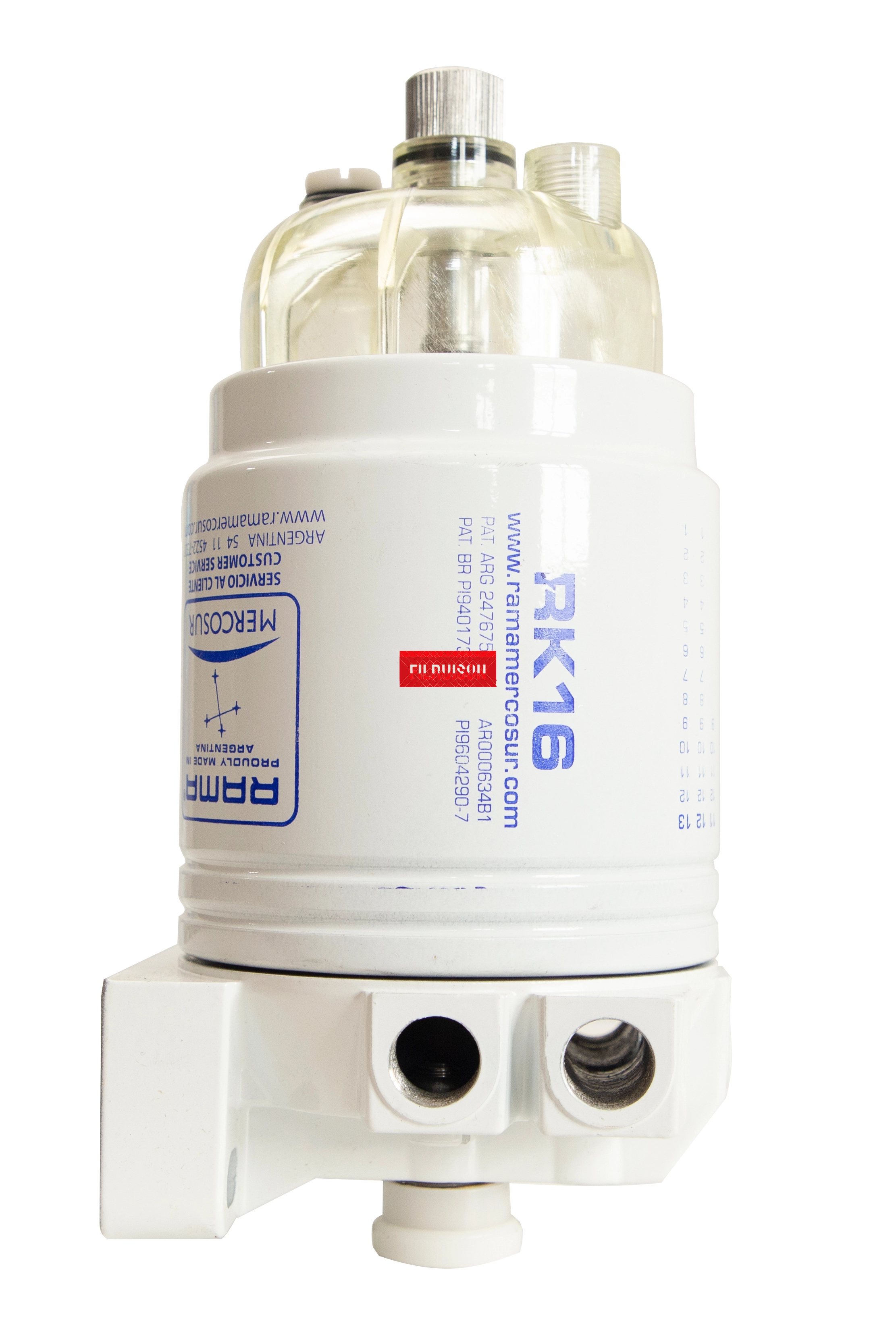 In this stage the water and superior solids to 30 microns are separated of the fuel by gravity/centrifugal force and decants to the bottom of the transparent collector bowl.